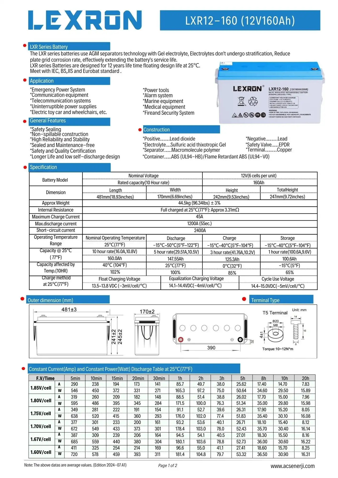 Lexron 160Ah 12V Nano-Karbon Jel Akü, güneş enerji sistemleri, hibrit inverterler, karavan, tekne ve off-grid uygulamaları için tasarlanmış yüksek performanslı ve güvenilir bir enerji depolama çözümüdür. Jel teknolojisi ve nano-karbon katkısı ile klasik akülere kıyasla daha uzun ömürlü, hızlı şarj olabilen ve bakım gerektirmeyen bir kullanım sunar.